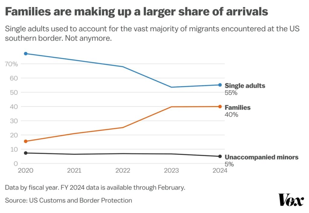 More families are also coming. This might be due to the correct perception that families have a better chance of remaining in the US if they travel together than if they travel separately.