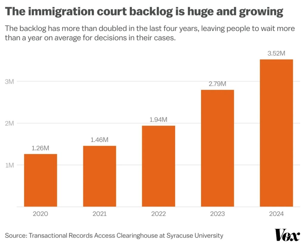 So far this year, resolving those cases has taken more than a year on average, during which time migrants may have been detained or released into the US.