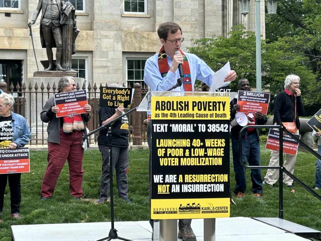 Instead of addressing the crises of poverty and low wages, lack of healthcare, underfunded public education, voter suppression and environmental collapse, the General Assembly slashed taxes for the wealthy and corporations, promoted a culture of fear and hate, failed to fully fund public education, and cut protections for the most vulnerable North Carolinians, the speakers said.