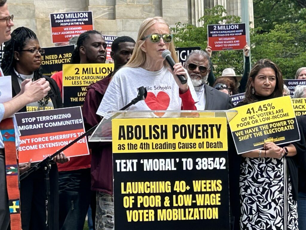 Sangria Noble, an organizer for the NC Poor People’s Campaign, said poverty is a policy choice. For example, she noted, that the state hasn’t increased the minimum wage since 2008.