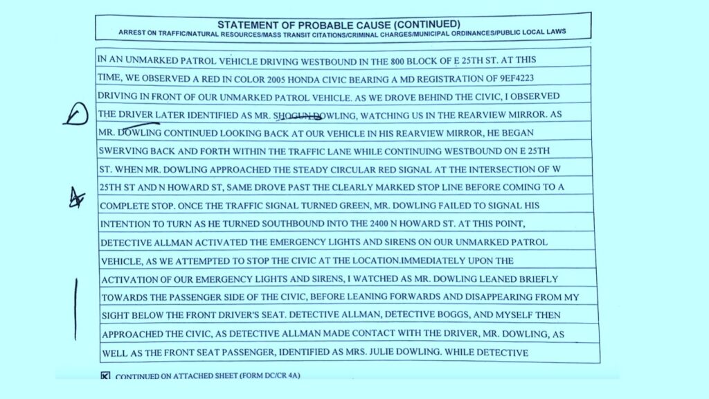 On Feb. 15, Meriwether wrote in a motion that “the police did not have reasonable articulable suspicion to stop or search” him, “did not have probable cause to seize or arrest” him, and that “the search and seizure…was invalid.” The Maryland Office of the Public Defender declined to comment on Dowling’s case.