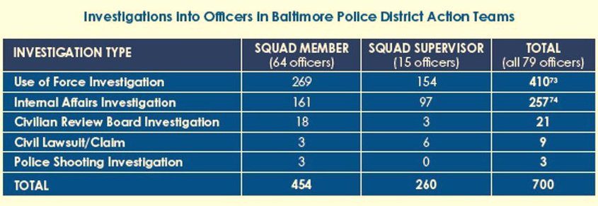 Misconduct is also pervasive in the squad, which is spread across all nine of the Baltimore Police districts.