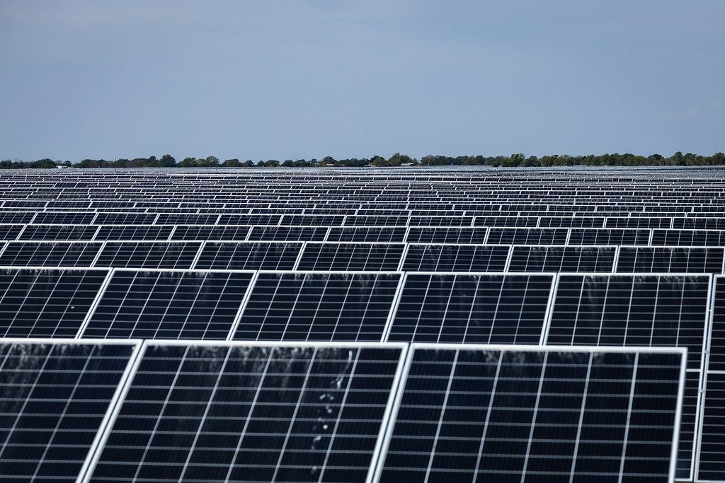 Rows of solar panels stretch into the distance at Enel Green Power’s Blue Jay solar array and battery storage in Grimes County.