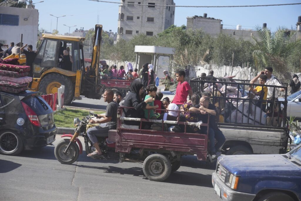 The evacuation directive covers an area of 1.1 million residents, or about half the territory’s population. The Israeli military said “hundreds of thousands” of Palestinians had heeded the warning and headed south. It gave Palestinians a six-hour window that ended Saturday afternoon to travel safely within Gaza along two main routes.