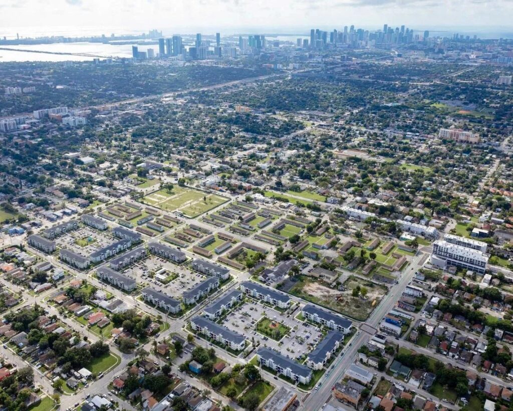 That is by design. A 2016 partnership between Miami-Dade County and Related Urban, the affordable housing arm of Related Group, aimed to redevelop Liberty Square, the first public housing project in the southeastern United States, in order to transform the community. Gone will be the pre-World War II row houses awash in faded yellow, light blue, pink and green that dot portions of the block along NW 62nd Street in Miami. Gone will be the front porches and the open yards. In their place: several three-story buildings have emerged, painted different shades of gray with splashes of the aforementioned colors accented on doors and the facade. So far, three phases of 10 have been completed.