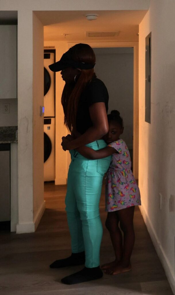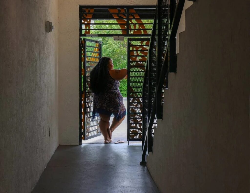 “This doesn’t remind me of Liberty City,” said public housing resident Samantha Kenley, calling the new building a “beautiful facade.” A mother of seven kids, Kenley made the decision to stay in the community that raised her in part due to the familial atmosphere and the guarantee of a better unit. Kenley’s unit, however, has had many problems including a cracked ceiling that leaks during heavy rain, rusted hinges and mold, which she claims gave her youngest son asthma. Management, she says, did little to help solve her issues.