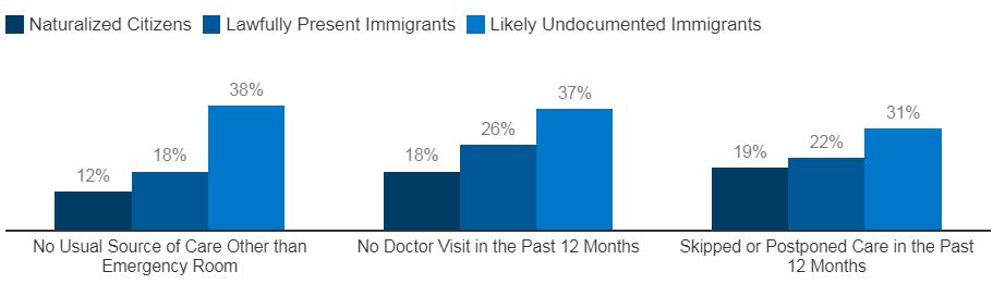 Figure 3: Health Care Access and Use among Immigrant Adults by Immigration Status, 2023