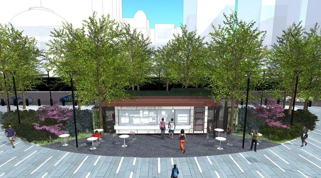 In 2019, the debate was about whether a private firm should be allowed to lease property in a newly revitalized public park. Conrad Benner of the Streets Dept. blog argued it would not “serve the public,” and his petition to stop the Starbucks kiosk garnered over 8,000 signatures.