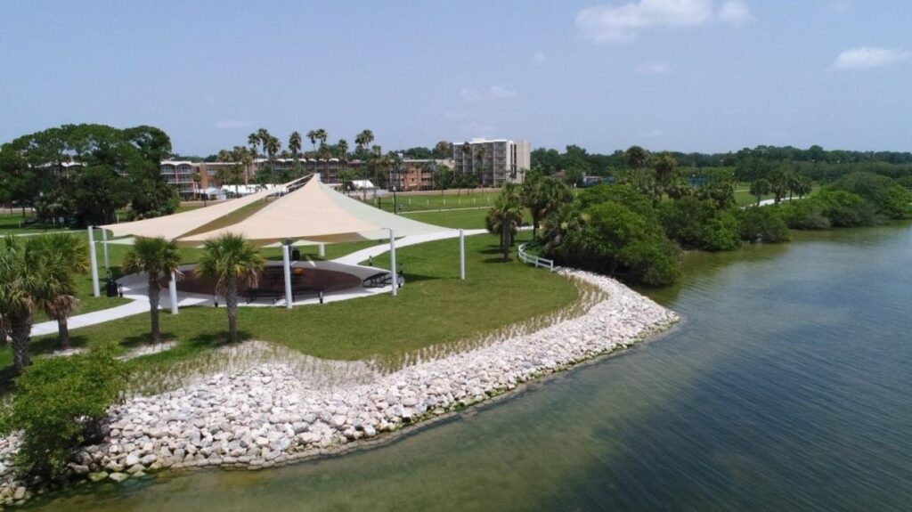 This living shoreline at Safety Harbor in Pinellas County uses natural materials to stabilize the shoreline while maintaining valuable fish and wildlife habitat.