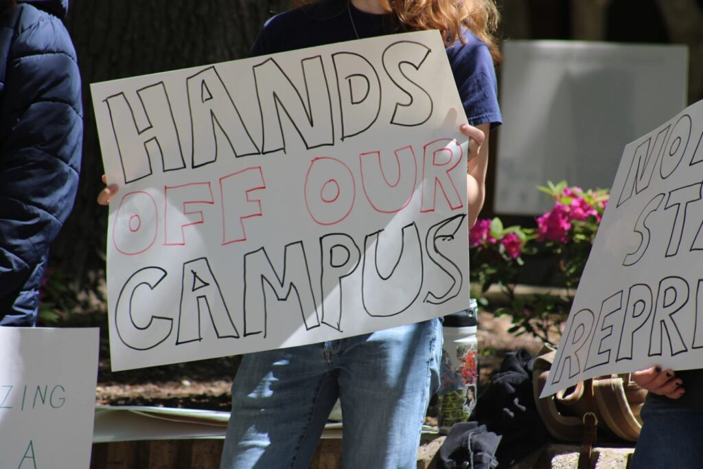 A UTA Student protesting SB17 on campus on April 11, 2024.