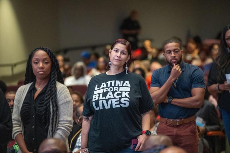 Melissa (center), a 21-year educator, wears a “Latina for Black lives” shirt at a Black history town hall last week.(Gregory Reed)