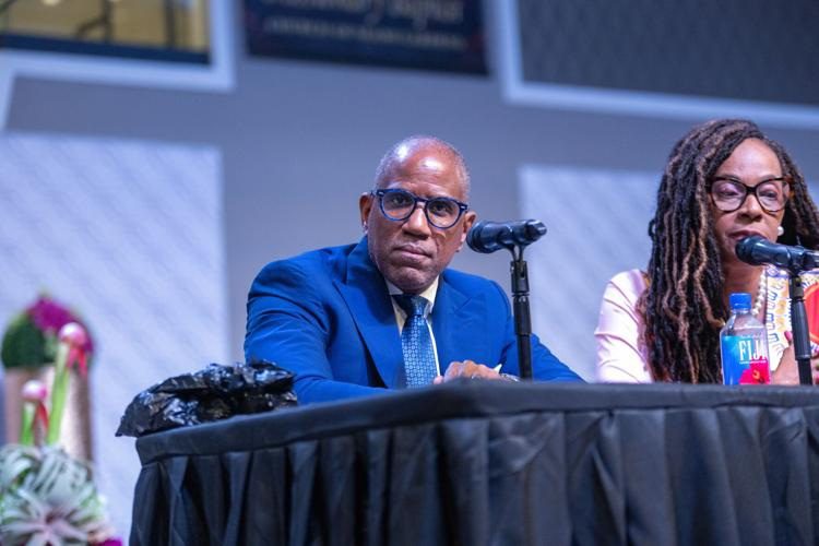 Dr. Steve Gallon, III, Miami-Dade County Public Schools Board member, was one of five panelists at an education town hall in Miami Gardens.(/Gregory Reed)