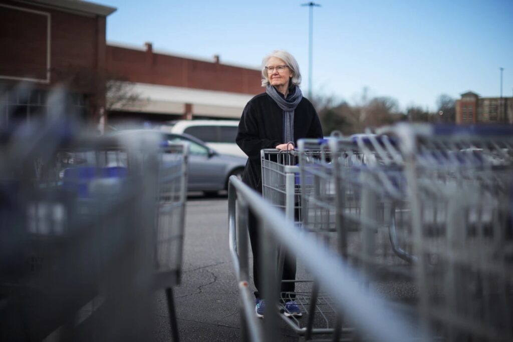 Pauline Doty shops for groceries at a Food Lion in Columbia, S.C., on Friday. She hasn’t had to visit a food bank recently, but she said she may need to start now that her monthly SNAP benefits have decreased from over $200 to $39.Travis Dove for NBC News