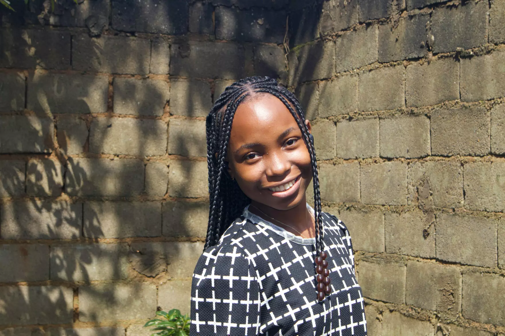 A girl with braided hair smiling.